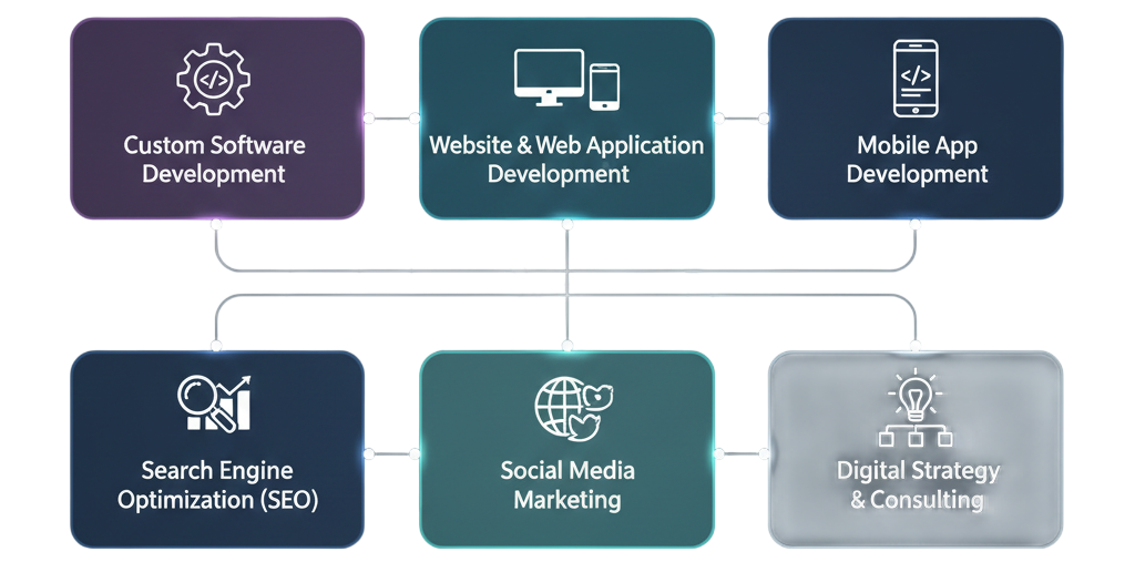 Our expertise spans across custom software development, web and mobile application development, search engine optimization (SEO), and data-driven marketing strategies. By combining technology with creativity, we help businesses build strong digital foundations and accelerate growth.